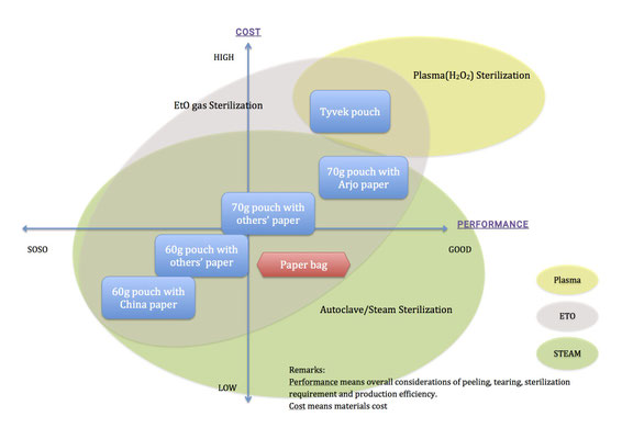 Before you choose a right hospital/dental sterilization packaging, you should consider the correct sterilization method and the cost/performance ratio (below ratio for reference).